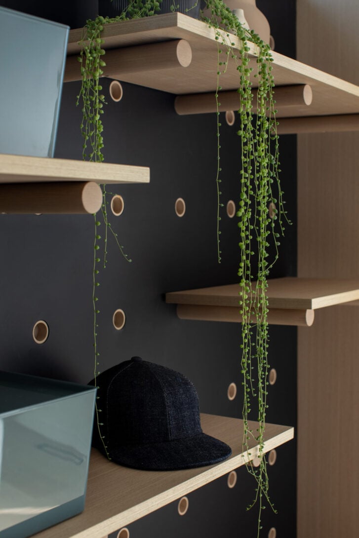 A statement pegboard and hard-working storage turn this mud room into the home’s smartest landing strip.