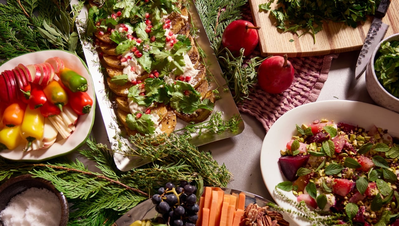1. Roasted Butternut Squash Salad with Tahini and Pomegranates