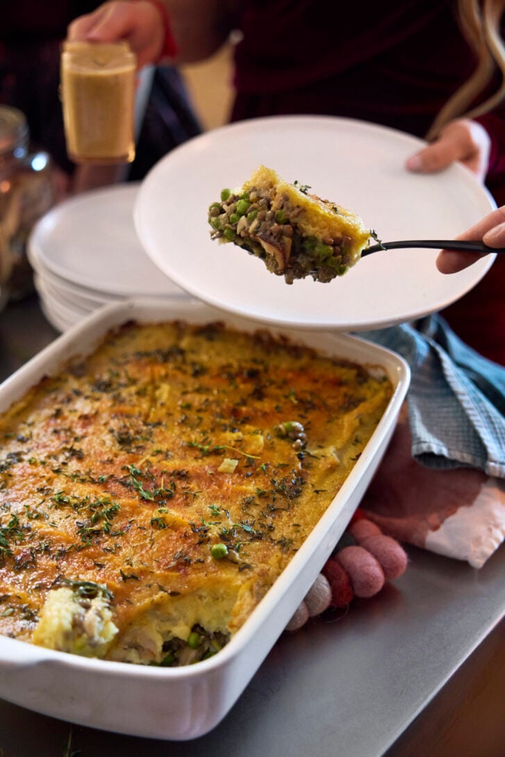 This shepherd’s pie is a staple in our home once the days start getting shorter and you can feel winter creeping in. It fills the home with comforting smells and although it requires a bit of prep, you can easily make this a day ahead of time and bake it to serve. Prepare it a day in advance or in the morning and keep it in the fridge. When you are ready to bake it, take it out at least 30 minutes before it goes in the oven so it has a chance to come close to room temperature. If you like leftovers, it also keeps for days in the fridge and tastes just as good reheated on day five as on the first day you make it.