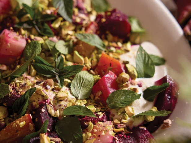 Vagelatos designed this bedroom for a woman in her mid-30s who loves to travel. Unapologetically girly and outgoing, the room layers pinks and reds with rich details that express the owner’s personality.Integrate details from different places and times. The vibrant, hand-printed Indian pillows add luxury, the intricate wrought-iron bed frame has a vintage feel, and the bold prints and bedside lamp keep the look modern.Get personal. The best interior designs tell stories. This one gains personal significance by incorporating the owner’s travel souvenirs alongside pieces by local artists.Mix girly with earthy. If you want to go feminine but don’t want frou-frou, add depth with organic elements like this textured grasscloth wallpaper.WLCFall2014_organic_valentine