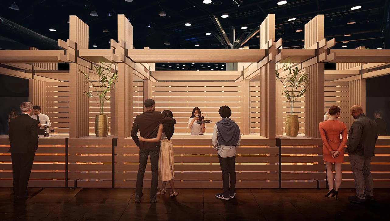 At first glance, the In/Tension Bar looks like your typical gathering space. Sleek lines rise from the floor outlining the structures stacked wood, forming a space that feels both minimal and monumental. This eye-catching bar doesn’t just serve drinks, it’s a notable example of what design can do when sustainability and collaboration come first.