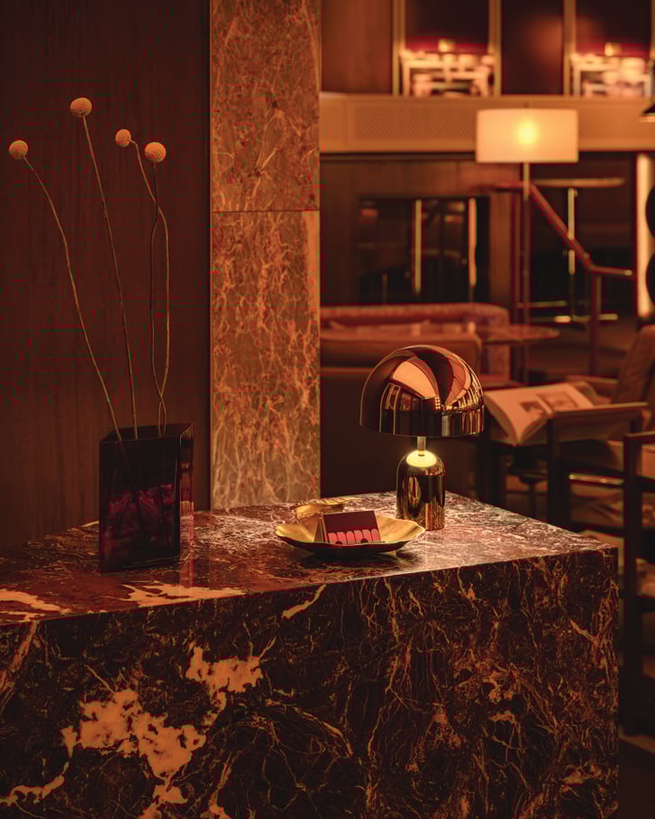 Costa says that the initial inspiration for Mimi’s lobby bar—along with the way that the space flows from the café to the bar to the restaurant and back—is reminiscent of how a lobby connects to the different parts of a hotel. Photo by Conrad Brown
