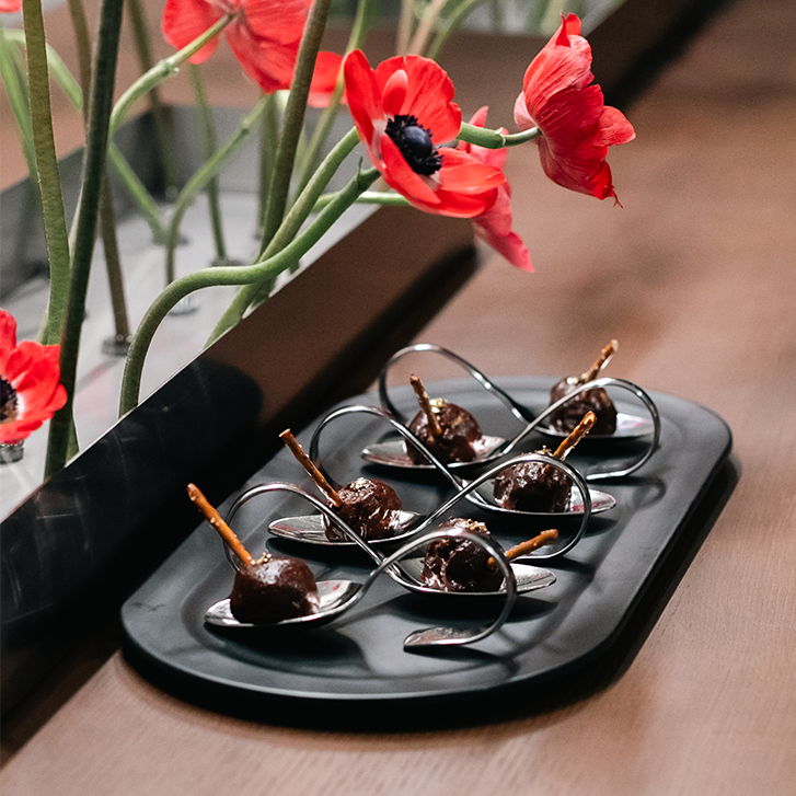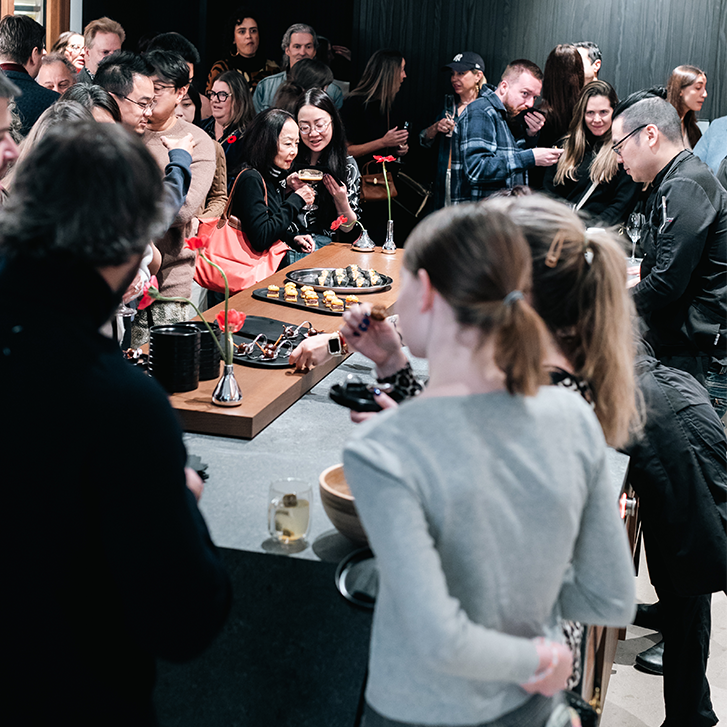 As guests mingled over these artful bites, the Gaggenau Showroom served as the perfect canvas for the event’s storytelling. Integrated throughout were Gaggenau’s Vario 400 Series ovens and cooktops, used in the food preparation, offering guests a firsthand look at the brand’s precision and performance in action.
