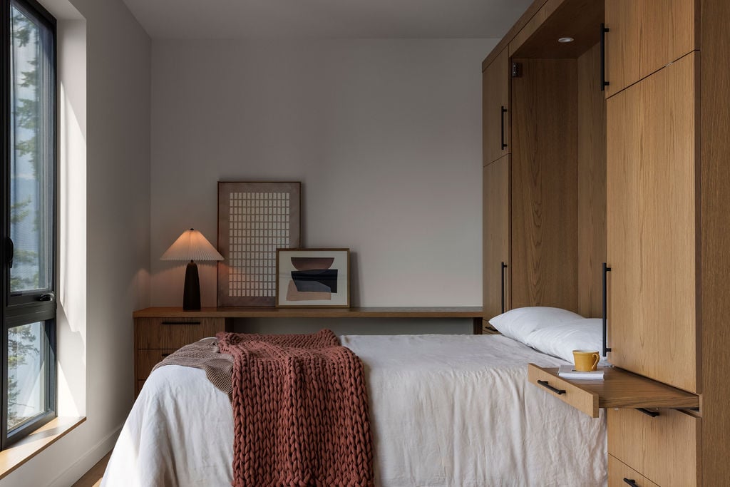 A custom built-in desk creates a dedicated workspace, paired with a Murphy bed to accommodate the occasional overnight guest.Photo Credit: Mary McNeill Knowles.