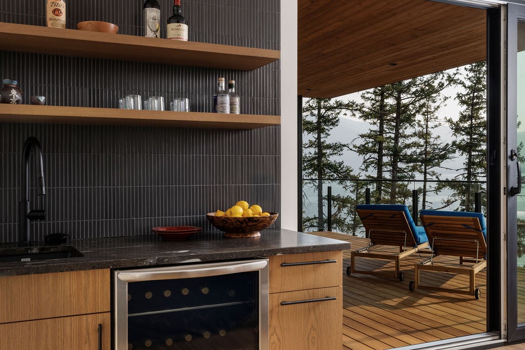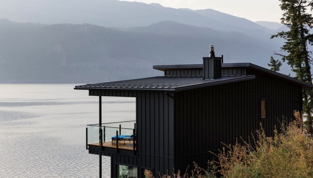 The result was the Stillwater House: an intimate 1700-square-foot one-bedroom, two-bathroom cabin, complemented by 600 square-feet of private decks and porches, in Riondel, B.C. (about a 35-minute ferry ride away from Nelson).