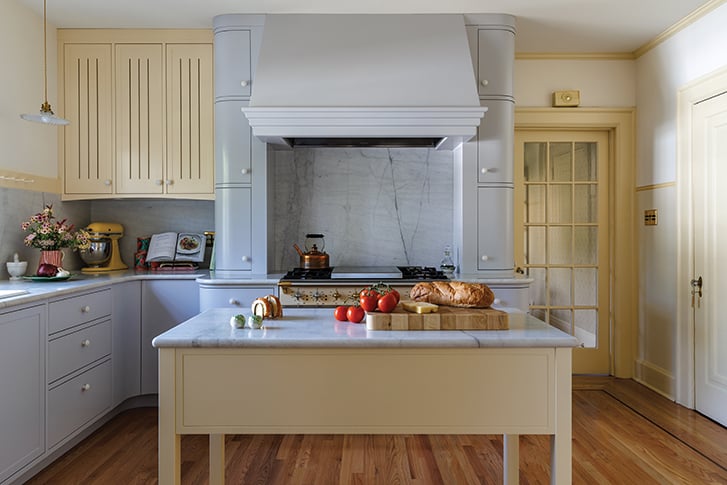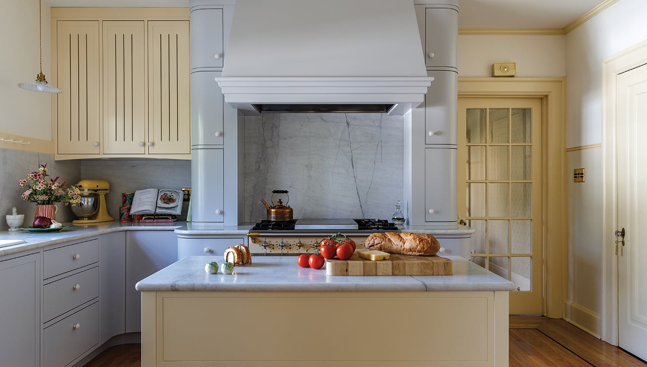 “In older homes, the kitchen was not the space where everyone hung out, or the family hub. It was really like a work zone,” the designer says.