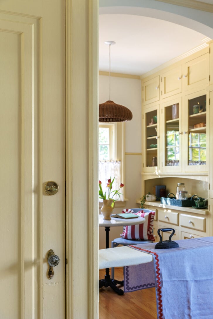Playful colour choices, inspired both by the homeowners’ “adventurous spirit” and the couple’s collection of cabbage plates, give the kitchen its lively, handcrafted charm.