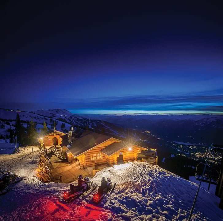 Equal parts adrenaline and indulgence, the four-hour snowmobile adventure’s big thrills culminate in a “cheesy” night of escape. Photo by Canadian Wilderness Adventures
