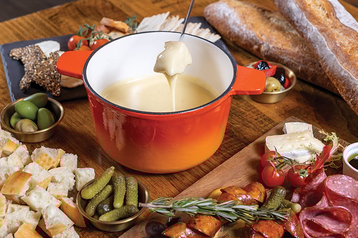 When you reach the Crystal Hut, a feast of food and music awaits. Relish the warmth in the rustic wood-panelled room as you dip fresh-baked crusty bread into a gooey, mouthwatering fondue that blends emmental and gruyere. Local charcuterie with cured meats and artisan cheeses augments the spread, along with pan-roasted chorizo sausage and IPA bratwurst with Dijon. For vegetarians, tempting alternatives like plant-based Italian sausage and vegan chili are available.