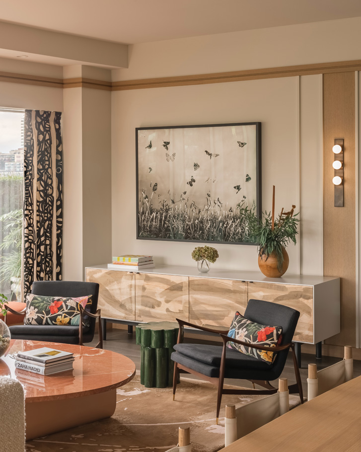 If the studio has a signature style, it’s rooted in an eclecticism that leans toward maximalism, with a happy swerve into mid-century Italian modernism. “If you look at that time, people were pulling inspiration from the past and thinking about the future simultaneously,” Snyder explains. In everything they do—from penthouses to beer cantinas—there’s a keen curiosity and an interest in building a story and a vibe: a goal that’s executed through textures that evoke a memory, palettes plucked from surprising reference points, and materials that delight.