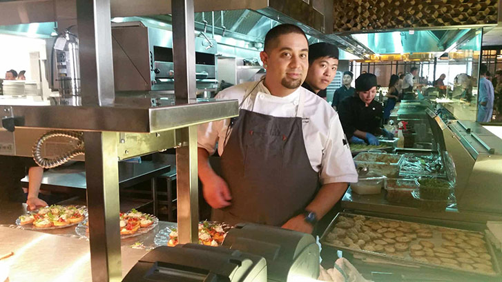 Guests heading inside were greeted by a glass case displaying the menu’s rotating feature stock of fine proteins (Wagyu beef, caviar etc.).20150819_171132_resizedThe “small” open kitchen on the main floor features Canada’s first custom built Robata grill (the main kitchen takes up the entirety of the floor below).20150819_171424_resizedWith a capacity of 60, the Gold Room—complete with glam gold wallpaper—is purportedly the largest private dining room in the city.20150819_171449_resizedOne of three private dining rooms on Glowbal’s second floor, this one is all leather, studs and ladies. (One side of the room features a gallery wall of famous pin-ups and celebs like Marilyn Monroe and Sophia Loren.)20150819_171022_resizedLounge-y areas aplenty at the new Glowbal, with interiors designed by Box Interior Design.20150819_172253_resizedGlowbal executive chef Pedro Gonzalez will be leading a team of 60 back-of-house staff in stripped-down North American cuisine. Expect dishes like Truffled Spaghetti & Signature Meatballs, Chili & Garlic Fried Sea Bass and Miso Marinated Sablefish.The Details: