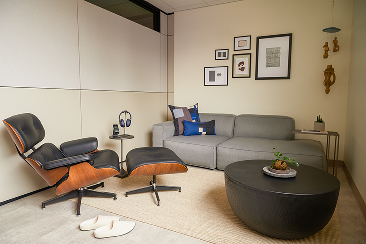 The treatment rooms themselves were made to be home-y but not cluttered or busy. Minimalist sofas from Article and Eames loungers give the rooms a classic feel, and wooden mobiles by Vancouver artist David Ullock add dynamism. “They dance on their own which is really lovely—It’s a really nice focal point, like staring into a fire.”