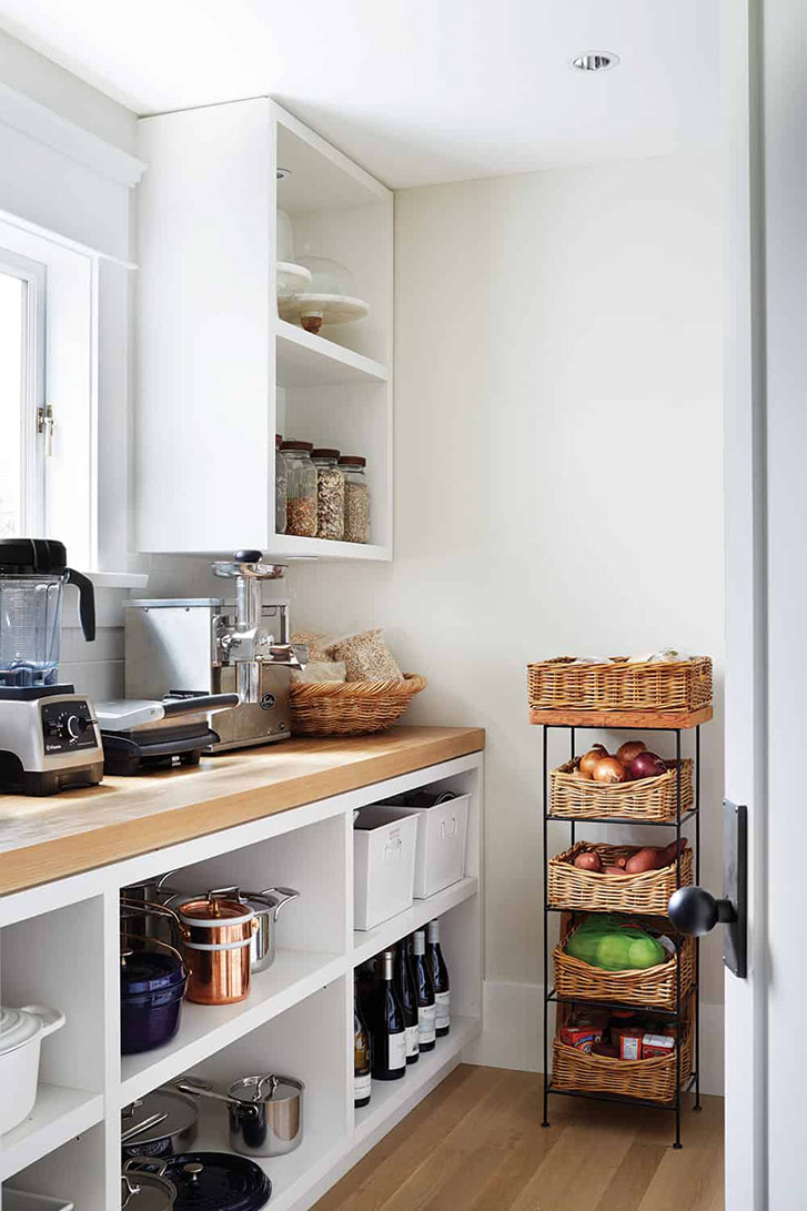 4. I.D. EverythingLabel liberally. That way, “you can get the whole family in tune with the organizing system.” Potter also suggests using clear plastic storage containers, since you’ll be able to see everything stowed inside.5. Savvy ShelvingWhy stick with the status quo? Shelf heights can often be adjusted, especially in the kitchen. Potter uses sticky notes to plan a home for everything in her pantry, then drops or raises shelves accordingly.6. On the Way OutOur professional organizer recommends keeping a bin or basket in the entryway where you can leave library books, dry cleaning, and anything else that needs to leave the house. “This ‘transport bin’ definitely needs to be near the front door,” she warns. Otherwise, you’re apt to forget all about its contents.