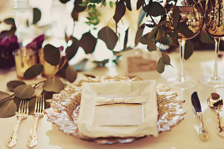 EllenHo_PlaceSettings Setting the table with name tags and whimsical keepsakes (like this gold horse figurine) is a simple gesture that will make your guests feel extra special. (Photo by Ellen Ho of Hong Photography.)