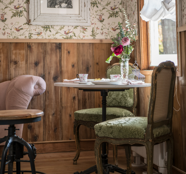The ‘Arcady’ front room in the Roadhouse features vintage furniture pieces and cafe-like functionality.