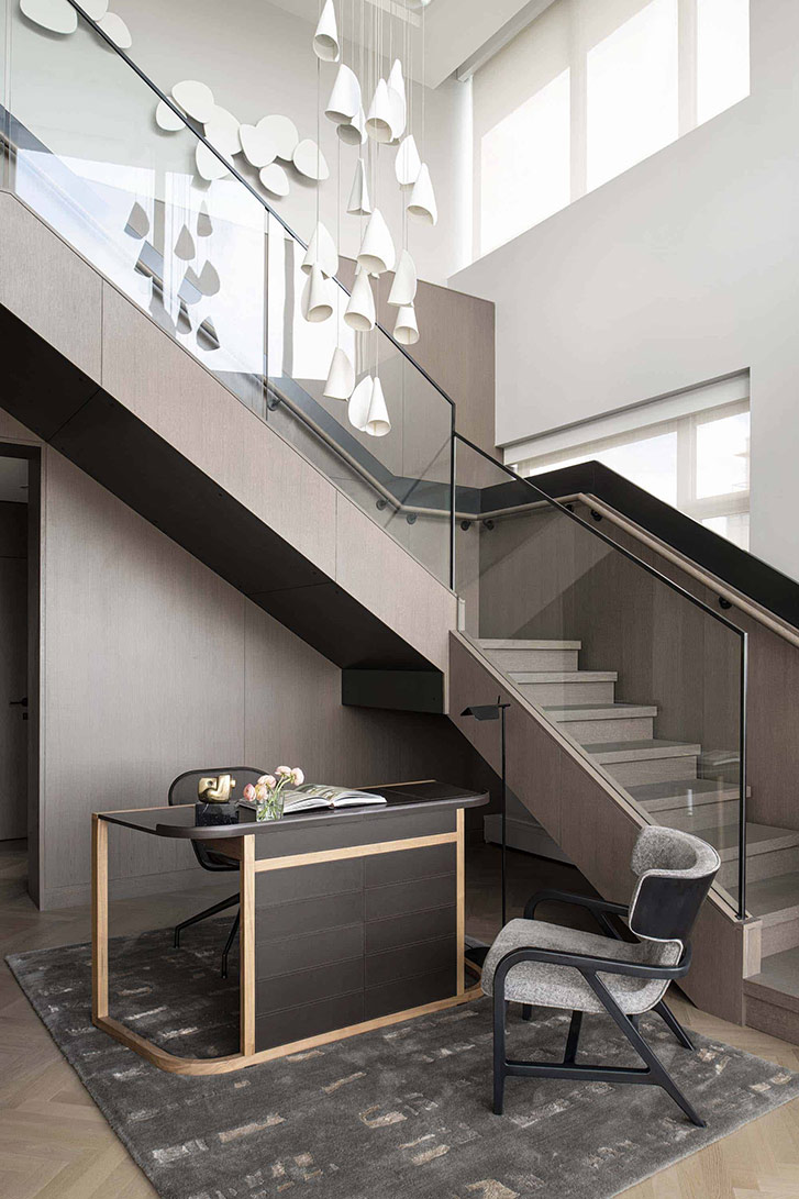 This homeowner, a highly spiritual person, sought a quiet, restorative environment for his personal wellbeing. But not only was he looking for a serene space that allowed him to retreat from the hectic pace of work that saw him travelling six months a year, but also a place that could function as showpiece too. The client envisioned a palette with a masculine aesthetic, a spiritual connection and muted restraint, but one that could also serve as glamorous and luxurious backdrop when entertaining or hosting visiting family.